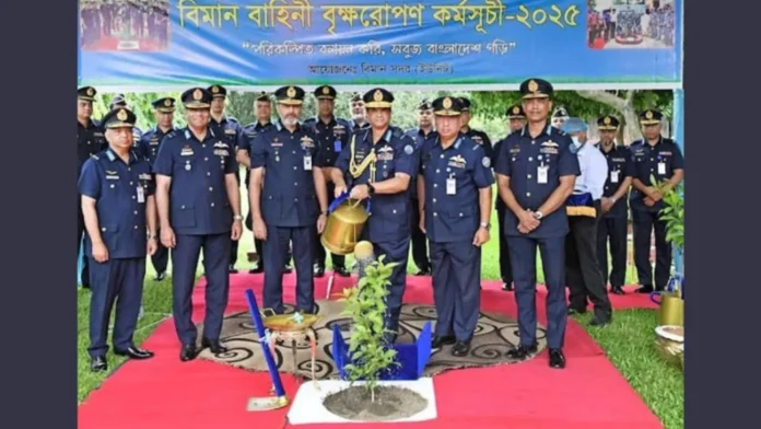 বাংলাদেশ বিমান বাহিনী (বিএএফ) ২০২৫ সালের জাতীয় বৃক্ষরোপণ কর্মসূচির অংশ হিসেবে সোমবার একটি সমন্বিত বৃক্ষরোপণ অভিযান শুরু করেছে।