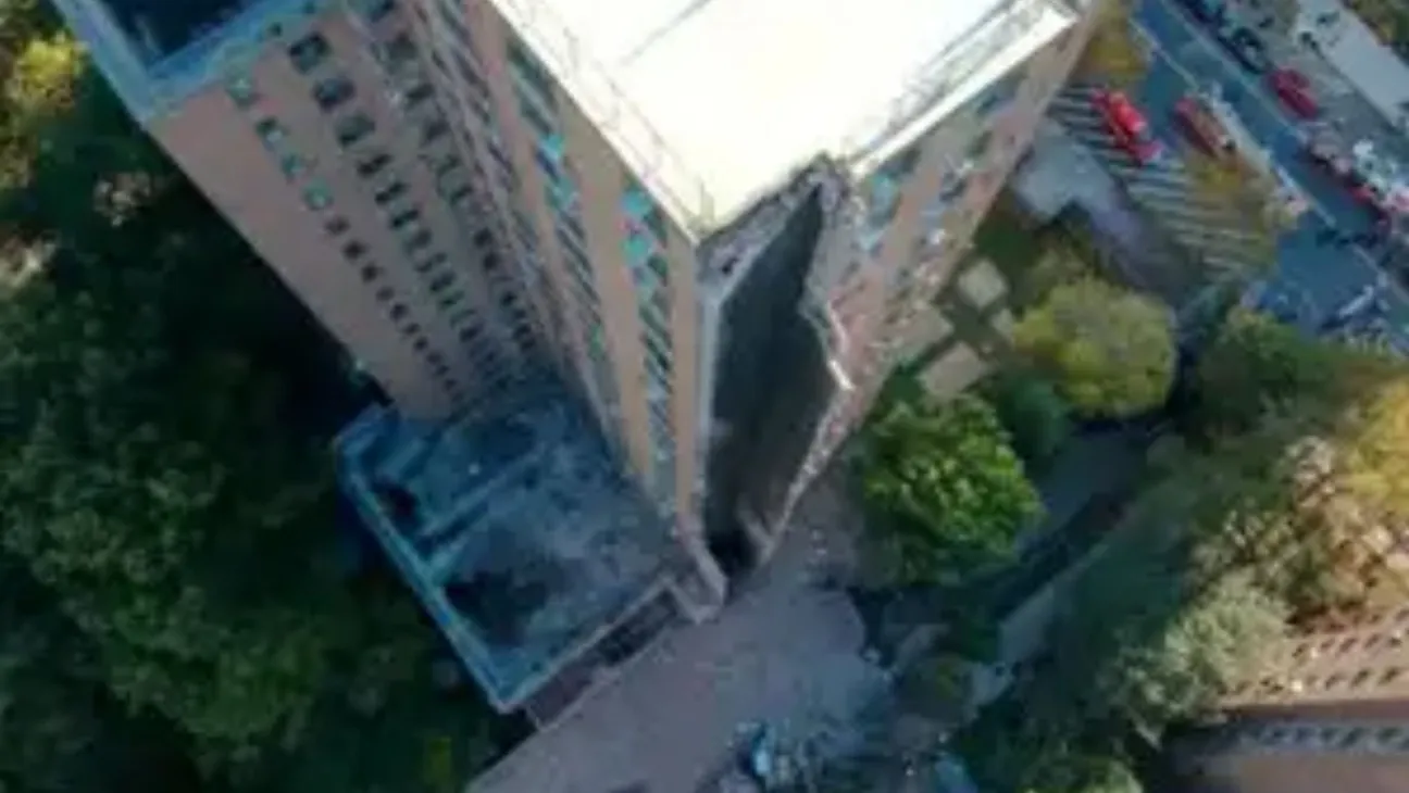 সামাজিক যোগাযোগমাধ্যমে ছড়িয়ে পড়া ভিডিও ফুটেজে দেখা যায়, উঁচু ভবনের এক কোণ মাটির তলা থেকে ছাদ পর্যন্ত ভেঙে পড়েছে। আশপাশের বাসিন্দারা ধারণ করা আরেকটি ভিডিওতে বিস্ফোরণের পরপরই ধুলোর মেঘ পুরো ব্লকজুড়ে ছড়িয়ে পড়তে দেখা যায়।