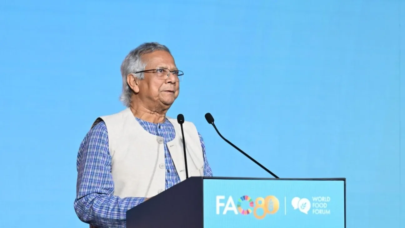 রোমে জাতিসংঘের খাদ্য ও কৃষি সংস্থা (FAO) সদর দপ্তরে সোমবার অনুষ্ঠিত বিশ্ব খাদ্য ফোরামের (World Food Forum) উদ্বোধনী অনুষ্ঠানে ছয় দফা প্রস্তাব উপস্থাপন করেছেন বাংলাদেশের প্রধান উপদেষ্টা ও নোবেলজয়ী অর্থনীতিবিদ অধ্যাপক মুহাম্মদ ইউনুস।