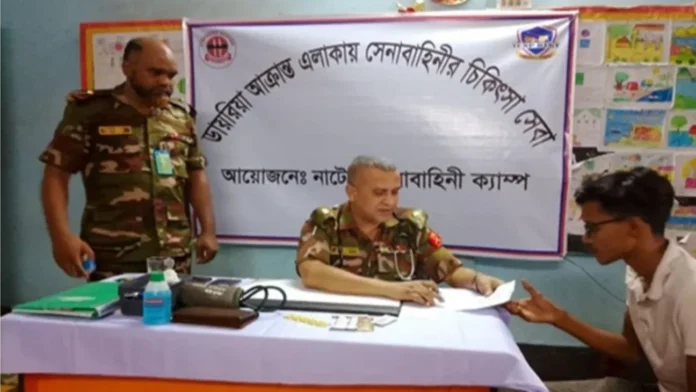 নাটোর সদর উপজেলায় ডায়রিয়া আক্রান্তদের জন্য বাংলাদেশ সেনাবাহিনীর বিনামূল্যে চিকিৎসা শিবির