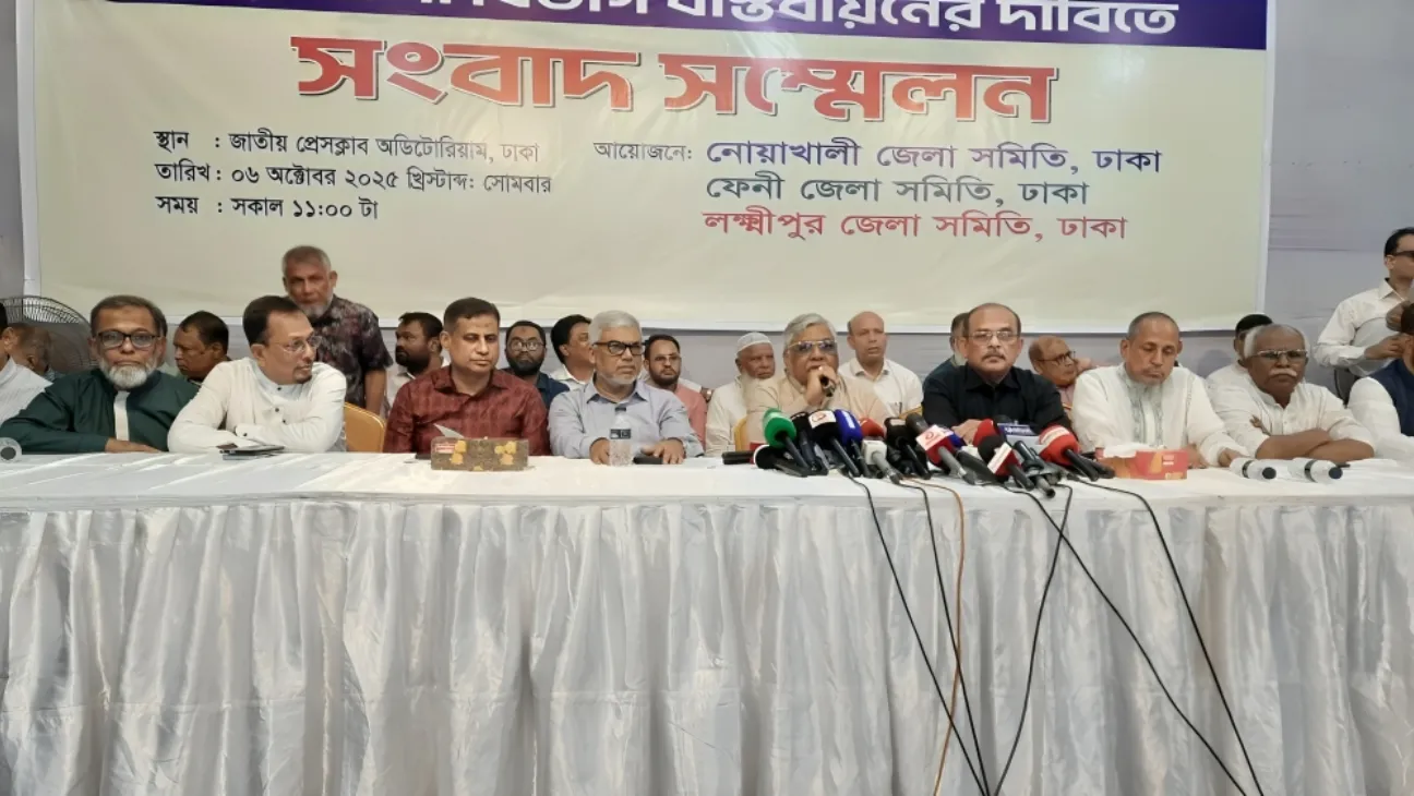 নোয়াখালী, ফেনী, লক্ষ্মীপুরসহ আশপাশের জেলাগুলো নিয়ে নোয়াখালী বিভাগ গঠনের দাবি জানিয়েছে নোয়াখালী বিভাগ বাস্তবায়ন কমিটি। সোমবার জাতীয় প্রেসক্লাবে আয়োজিত এক সংবাদ সম্মেলনে তারা প্রধান উপদেষ্টা অধ্যাপক ড. মুহাম্মদ ইউনুসের কাছে বিষয়টি বাস্তবায়নে প্রয়োজনীয় পদক্ষেপ নেওয়ার আহ্বান জানান।