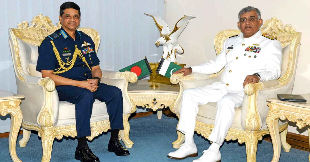 পাকিস্তান নৌবাহিনীর প্রধান অ্যাডমিরাল নবীদ আশরাফ ঢাকায় বাংলাদেশ বিমানবাহিনীর প্রধান এয়ার চিফ মার্শাল হাসান মাহমুদ খানের সঙ্গে সাক্ষাৎ করেছেন।
