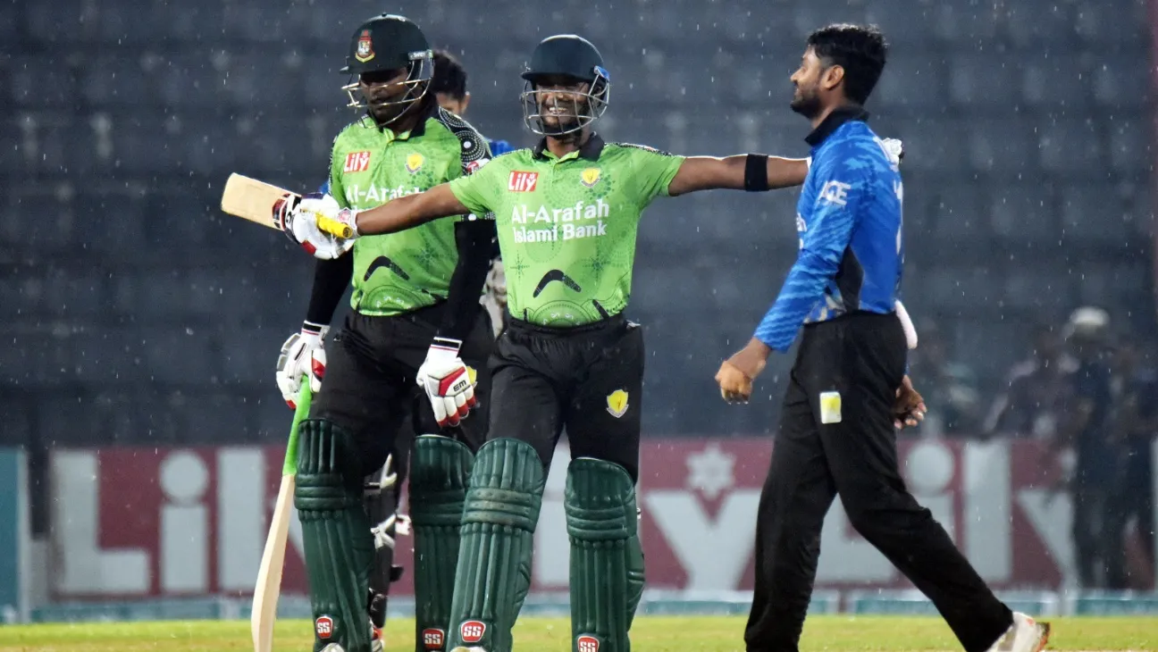 আগের অংশে জাহিদ জাভেদ (৩৫) এবং নাসির হোসেন ৭৬ রানের উদ্বোধনী জুটি গড়েন। নাসির হোসেন ৪১ বলের মধ্যে চারটি চার এবং তিনটি ছক্কার সাহায্যে ৫৪ রান করেন, যা রংপুরের সফল তাড়া নিশ্চিত করে।
