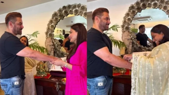 সেলিব্রিটি সালমান খান শনিবার (৯ আগস্ট) তার বোনেদের সঙ্গে মুম্বাইয়ের আলপনা আগ্নিহোত্রির বাড়িতে রক্ষাবন্ধন উৎসব পালন করেন।
