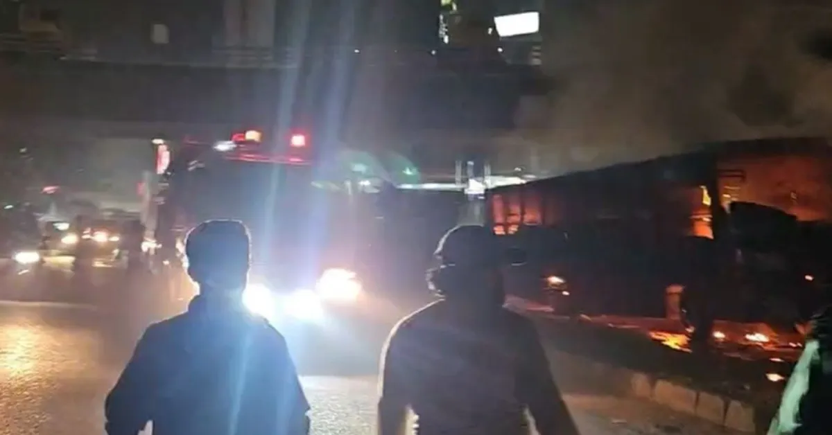 বিটিভি ভবন গেটের সামনে parked বাসে অগ্নিসংযোগ, হাজির ফায়ার সার্ভিসের দুটি ইউনিট